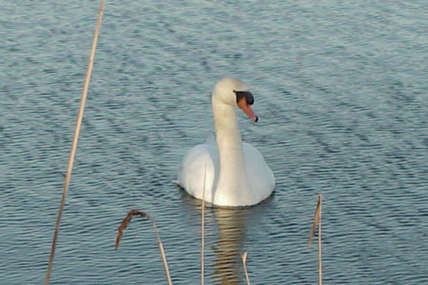 De knobbelzwaan is een grote witte vogel van ongeveer 150 cm met een lange hals. De jonge zwanen