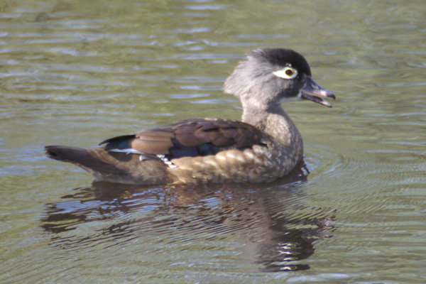 40 cm. De woerd heeft een roodbruine kop, hals, borst en flanken. De ogen zijn wit.